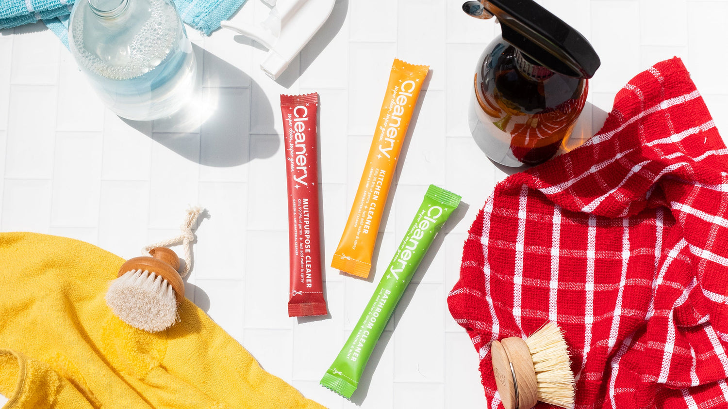 Tip your Cleanery sachet into your reusable bottle of choice